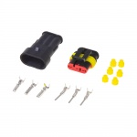 Vodotěsný konektor AMP 3-pólový, včetně pinů. Zatížení konektoru 24V, 14A. Balení 10ks.